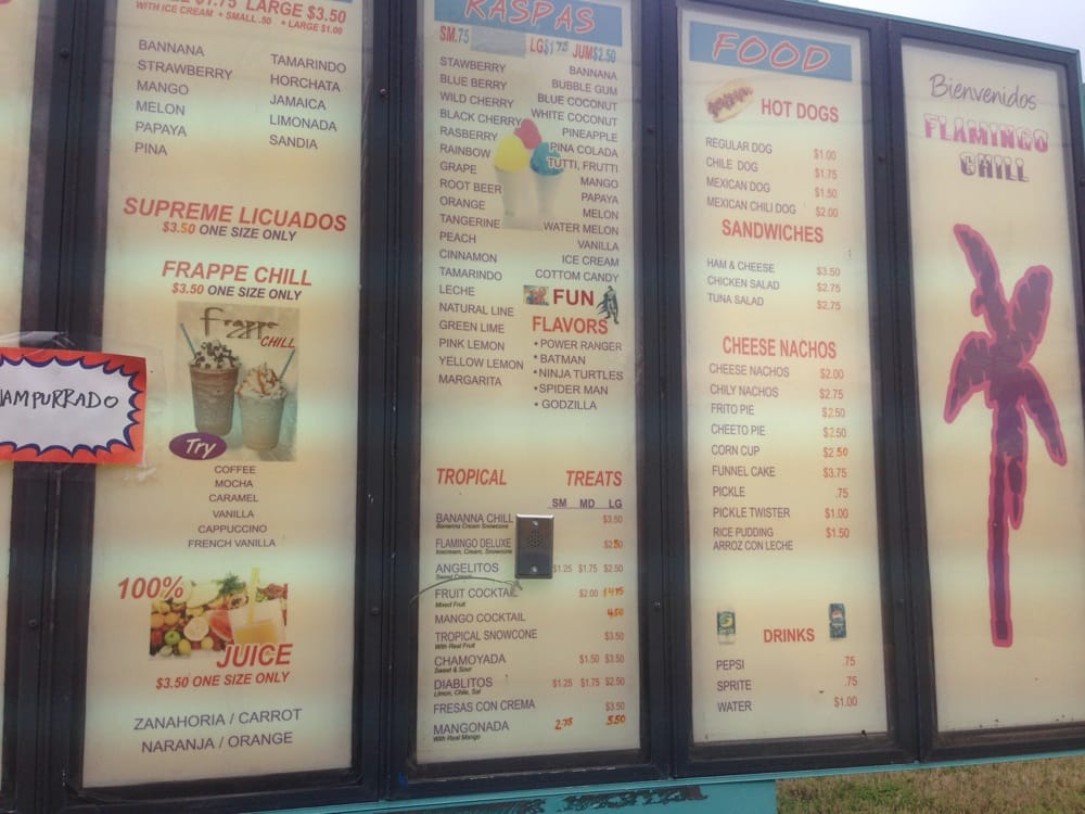 Flamingo Chill, located in Houston, TX, is a vibrant spot offering Hot Dogs, Juice Bar & Smoothie, and American cuisine. With an array of amenities like delivery, takeout, outdoor seating, and Wi-Fi, Flamingo Chill caters to a diverse customer base. Customers rave about the delicious menu items, such as the elote, Cheeto pies, funnel cakes, and massive raspas. The fruit platter stands out for its fresh, well-prepared fruits with a sprinkle of salt and tajin. The corn in cups and frappes are also highly praised for their rich flavors and generous portions. Despite occasional wait times, customers appreciate the affordable pricing and menu variety. Flamingo Chill's welcoming atmosphere and flavorful offerings make it a must-visit for anyone looking for a delightful dining experience in Houston.